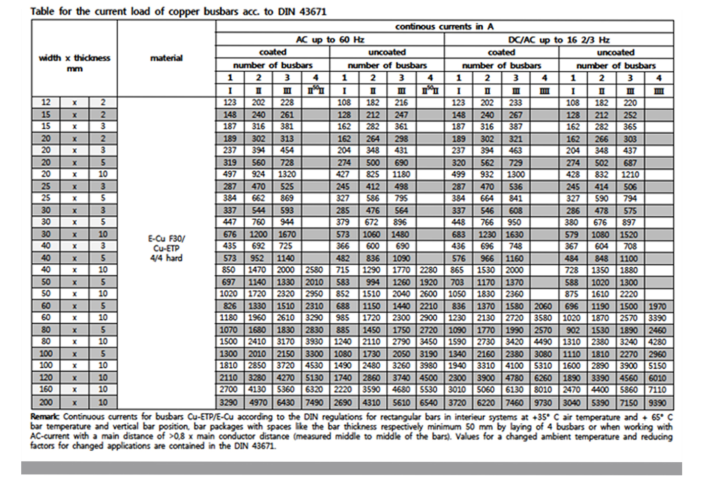 Coper Bus Bar 허용 전류